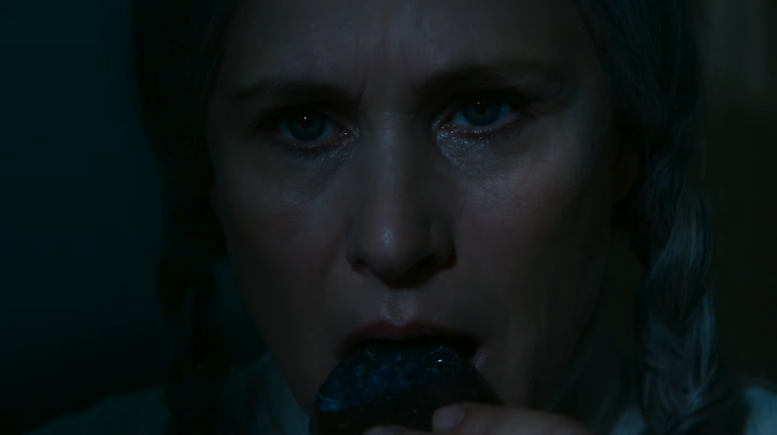 Ms. Cobel is a kaleidoscopic vector of strange femininity in the show. She is at once old widow next door, a girl-boss superior on the severed floor, and a little girl prone to tantrums. As Mrs. Selvig, the hare-brained widow next door, she offers Mark unwanted company and cruddy cookies. Yet we know by now that this is apparanetly a ruse, a senile disguise through which the conniving Harmony Cobel can keep an eye on her employee, Mark, beyond the bounds of his time at work. At Baird Creek, she is a middle-aged executive in the clothing of an older and less cognitively composed character.